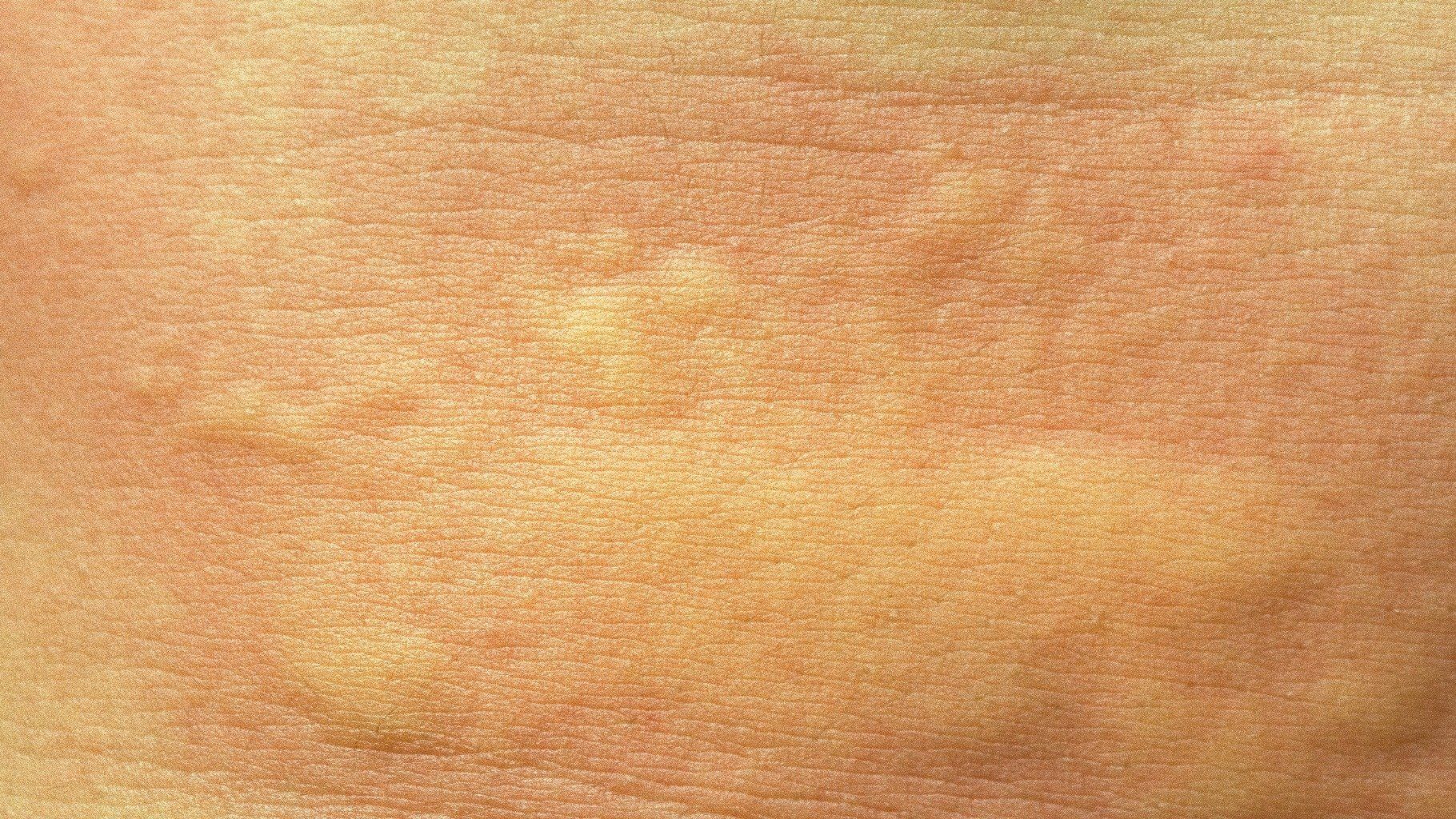 אזורים אדומים, מורמים, נפוחים ומגרדים בגודל משתנה בעור הגוף. הם יכולים לנדוד ולהופיע בכל מקום במהלך התגובה.
